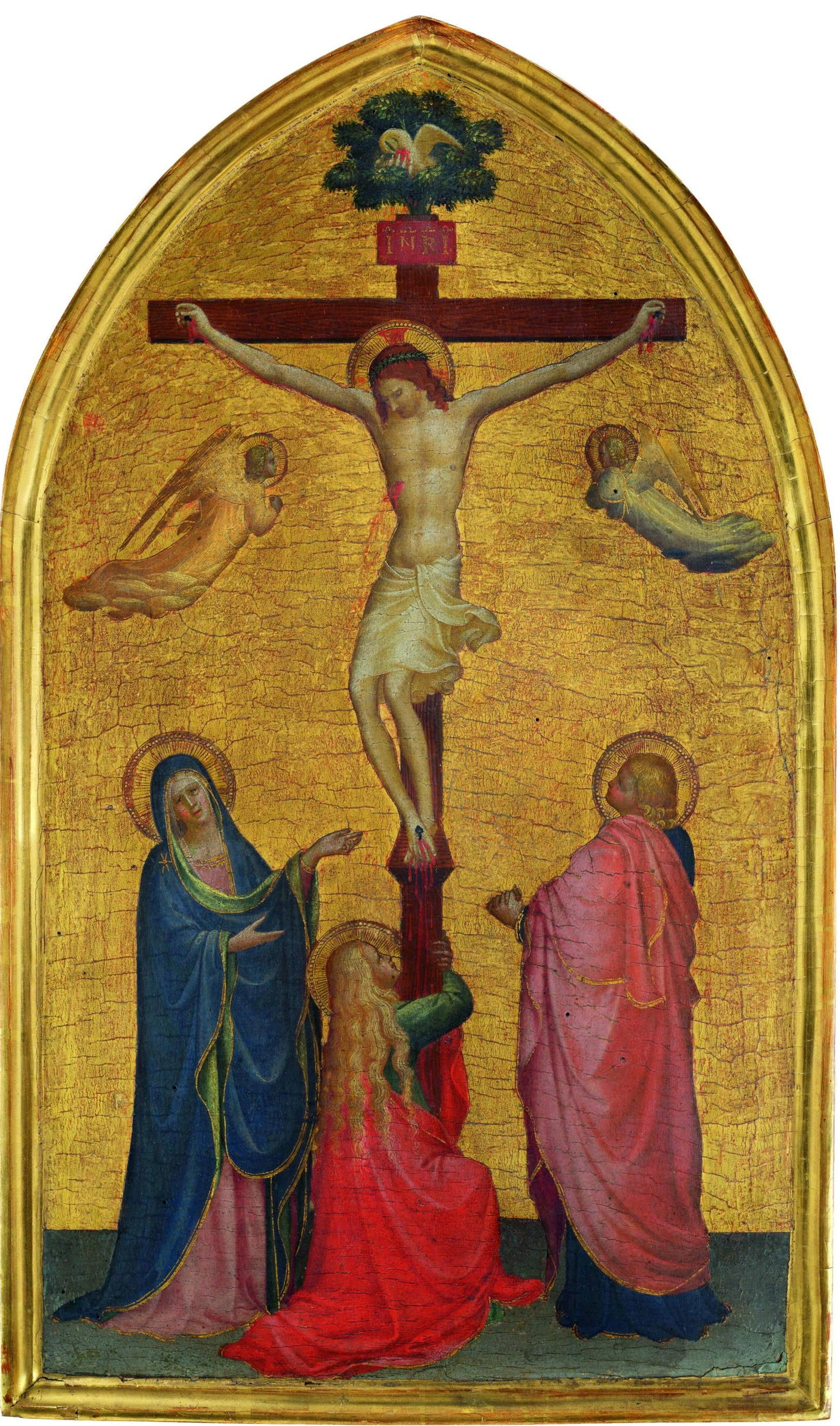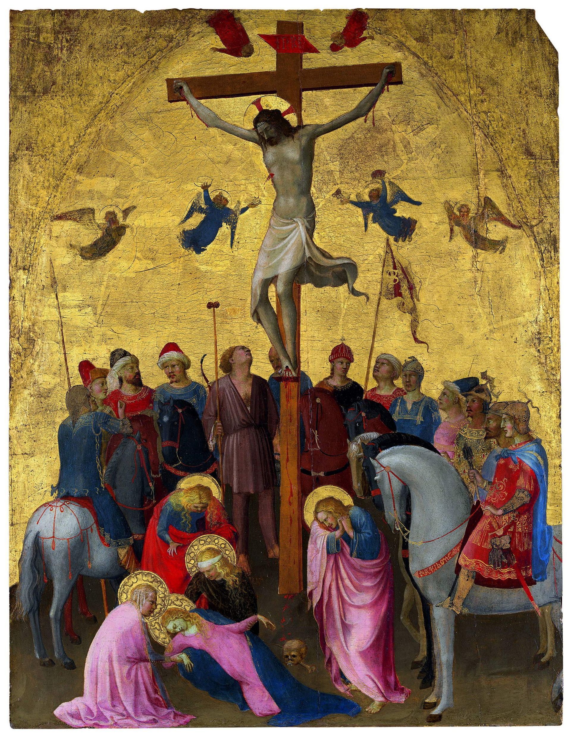 Tra i lavori della prima fase considerati capisaldi figurano in mostra la Crocifissione Griggs del Metropolitan Museum, opera densa di rimandi a Masolino e a Ghiberti; la finissima Madonna col Bambino in trono e dodici angeli dello Städel Museum ch’è esposta di fianco a una sua copia eseguita da Andrea di Giusto (così chiunque può percepire la differenza tra un ottimo artista come Andrea e un fuoriclasse come il Beato Angelico); e infine la Crocifissione tavola tra le più squisite della sua produzione giovanile, esposta in Italia per la prima volta, la cui presenza costituisce uno dei momenti più alti della mostra fiorentina.