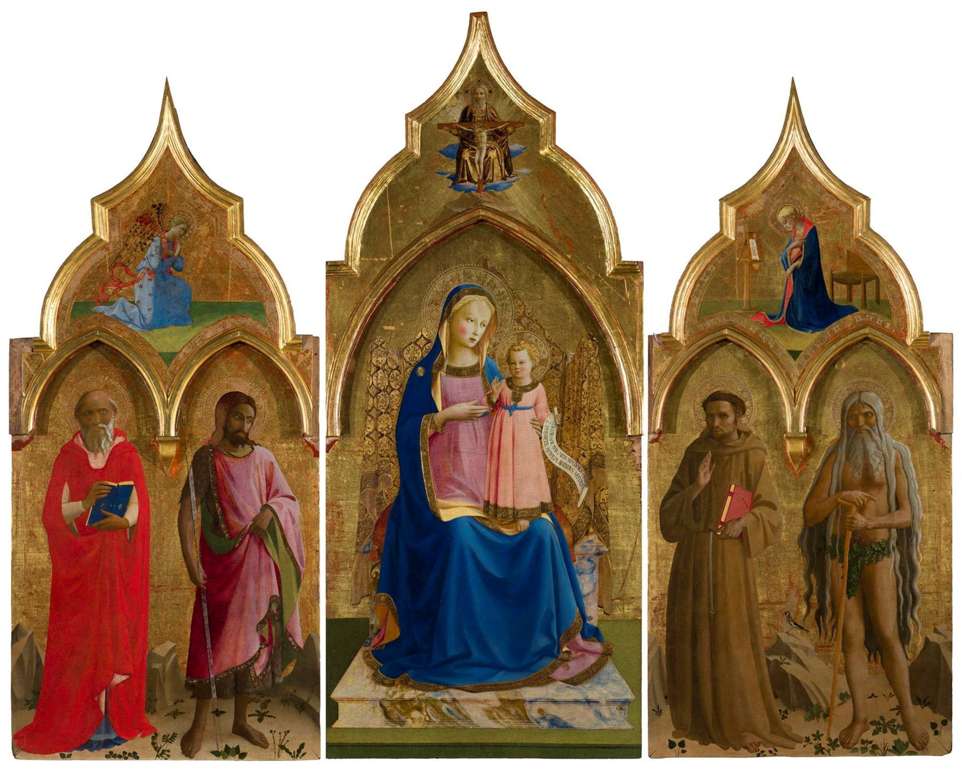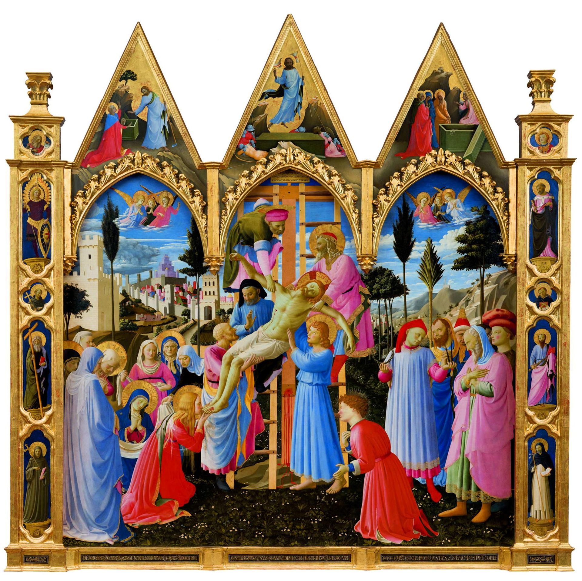 La mostra ha avuto, tra gli altri, il merito d’offrire al pubblico, nella prima sala di Palazzo Strozzi, una sorta di ricostruzione ideale della chiesa di Santa Trinita del primo Quattrocento, quando chiunque vi fosse entrato avrebbe visto tre sbalorditivi capolavori del primo scorcio del XV secolo, ovvero l’Annunciazione di Lorenzo Monaco, l’Adorazione dei Magi di Gentile da Fabriano e la Deposizione del Beato Angelico, tre opere oggi tutte conservate in luoghi diversi, per quanto tutti a Firenze (l’Annunciazione è rimasta in Santa Trinita, l’Adorazione è agli Uffizi e la Deposizione è custodita al Museo di San Marco).
