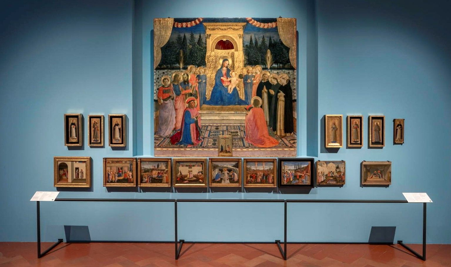Al centro della mostra, la prima ricostruzione «in presenza» della Pala di San Marco (1438-1442), rimossa dall’altar maggiore di San Marco (per il quale Cosimo de’ Medici l’aveva commissionata), poi smembrata e infine dispersa in più musei (la stessa passione per Beato Angelico che avrebbe conquistato Botticelli, Lippi, Chagall e persino Goethe alimentò anche un mercato di smembramenti e vendite più o meno leciti). La Pala ritrova qui 17 dei suoi 18 elementi: in origine tutti inseriti in un supporto ligneo che la mostra restituisce in forma di profilo disegnato.