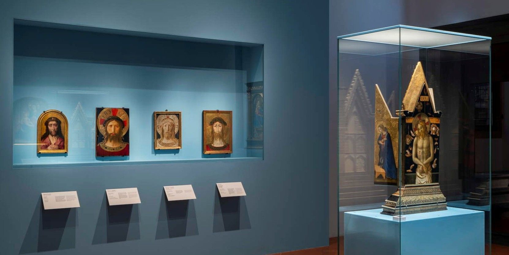 Buona parte della produzione dello stesso periodo è stata radunata per accostamenti talora molto suggestivi: è il caso dei “volti santi”, straordinaria sequenza, uno degli apici della mostra, che mette in fila, accanto al Cristo come Re dei Re del Duomo di Livorno, una serie di opere omologhe, da Dieric Bouts a Benozzo Gozzoli e Benedetto Bonfigli, per dimostrare come, da un lato, l’iconografia angelichiana si rifacesse a modelli nordici, e dall’altro come avesse stabilito una sorta di paradigma, un’immagine immediata ch’era diventata strumento di preghiera capace d’una certa diffusione.