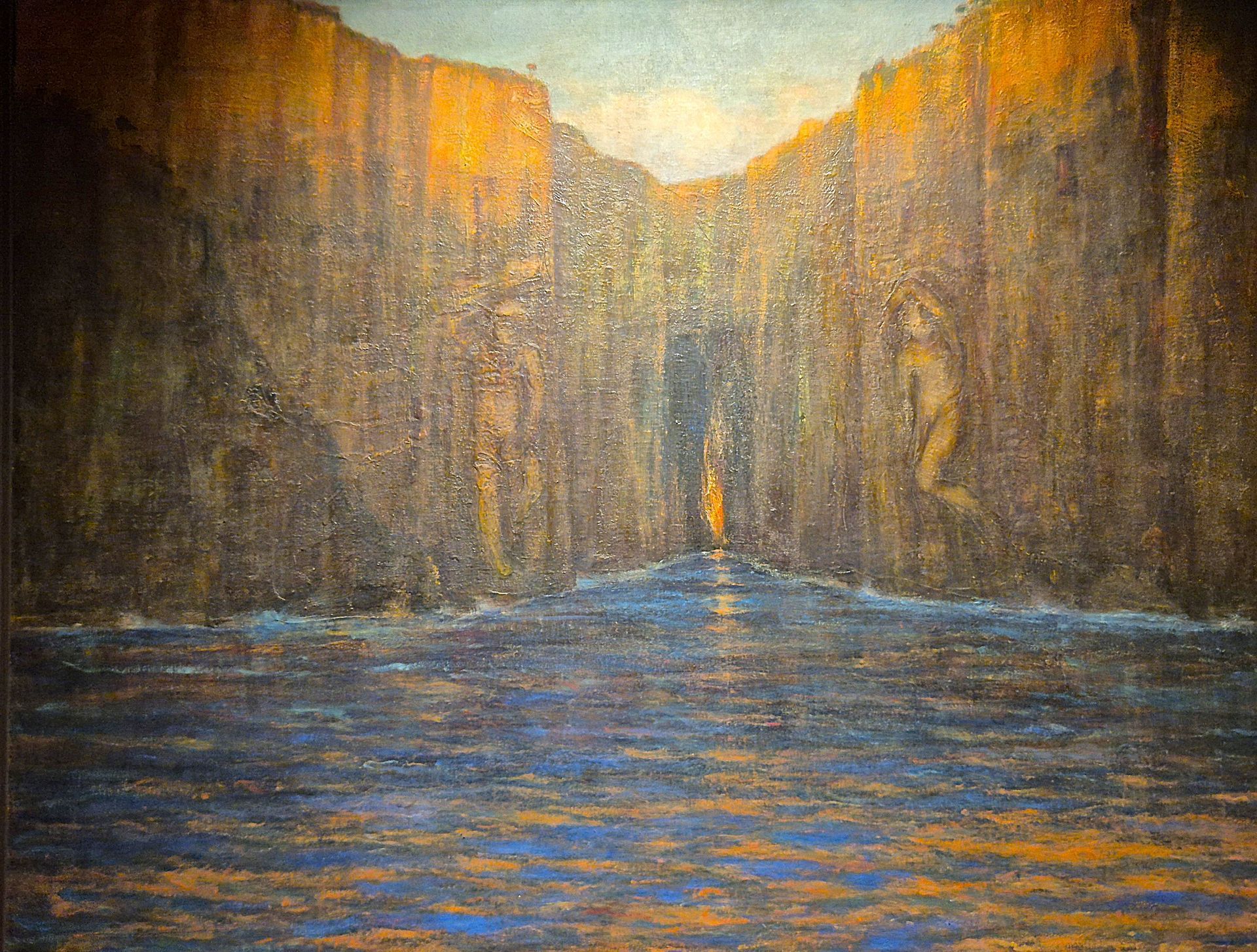 Carlo Schlatter ha dipinto molti paesaggi marini, ora en plein air alla maniera macchiaiola, ora come specchio dell'interiorità e soglia verso l'ignoto. L'acqua si fa sostanza primordiale, materia dell'anima in perenne mutamento; le marine si configurano dunque come veri e propri paesaggi esoterici.