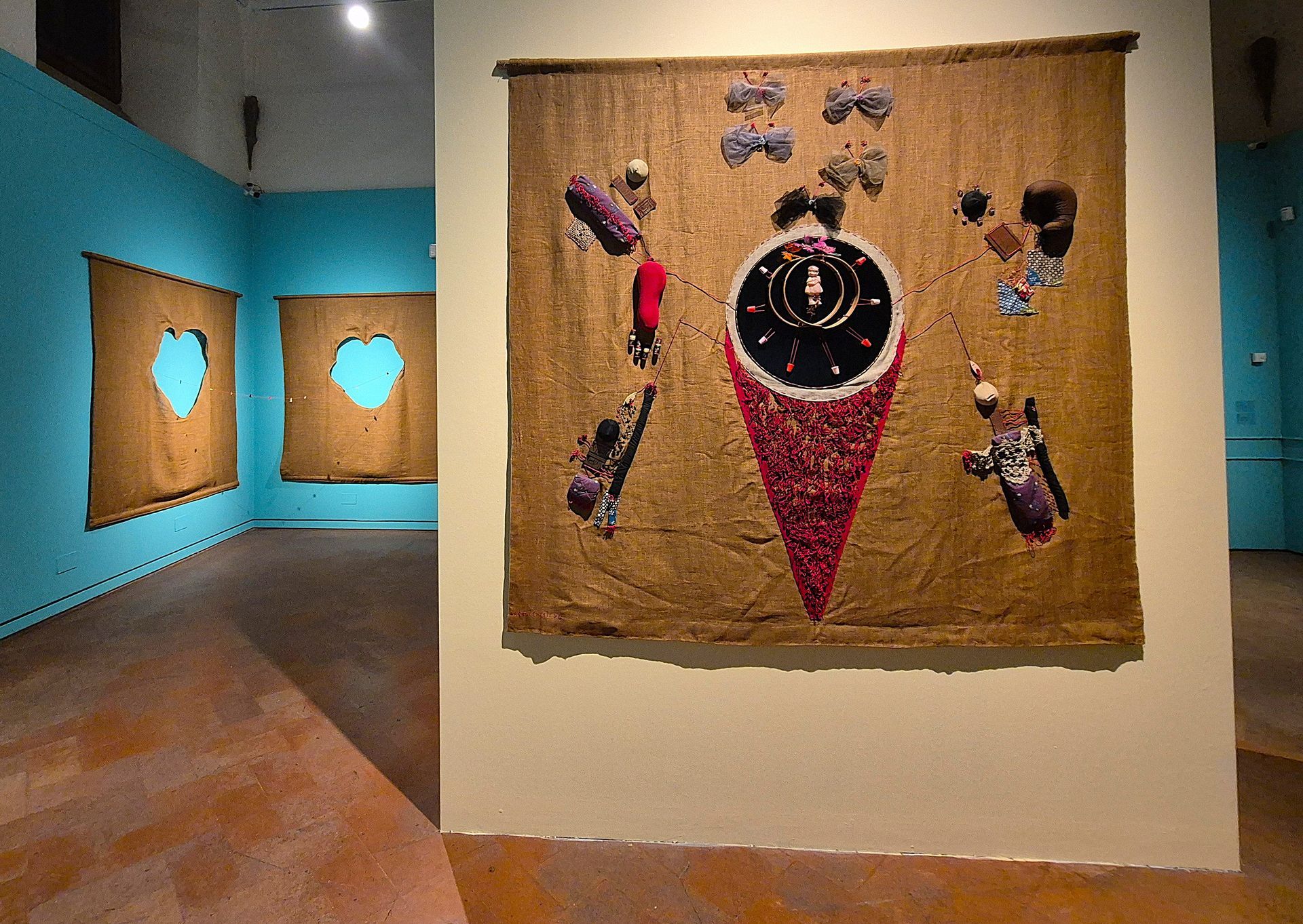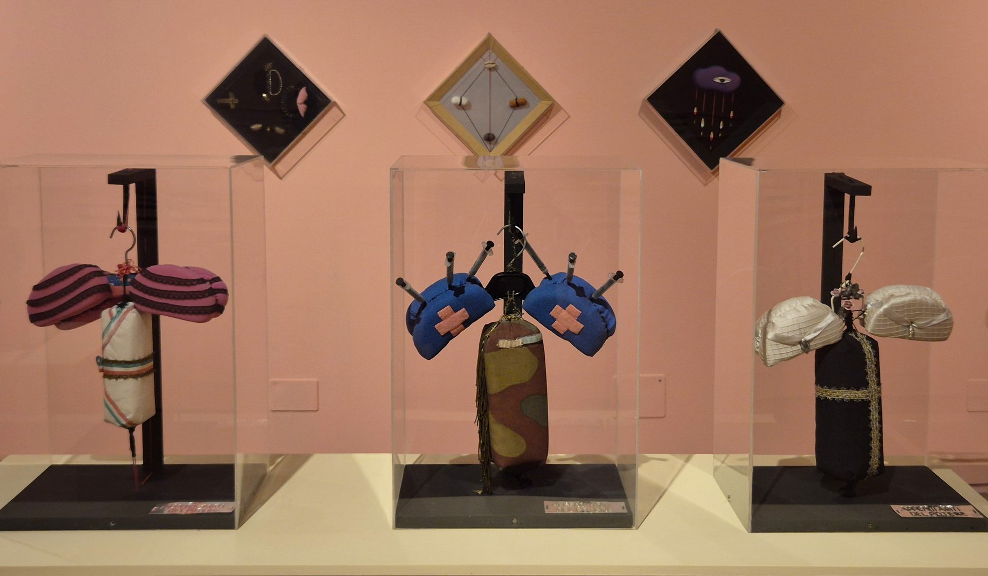 Nascono i primi assemblaggi polimaterici creati con oggetti legati “tradizionalmente” al lavoro femminile “di cura e maternità” e all’idea di donna “devota e paziente”. Per la prima volta, a distanza di oltre cinquant’anni, la mostra di Palazzo Medici-Riccardi le raccoglie di nuovo tutte insieme.