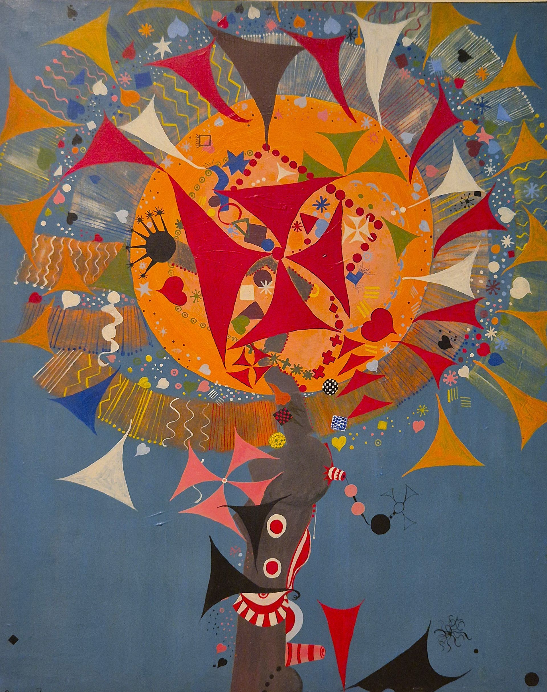 All’inizio degli anni ’70, Clemen Parrocchetti continua a dipingere ma, in un certo senso, alleggerisce i toni del suo espressionismo. Il suo linguaggio è più diretto e il vocabolario segnico è meno caotico e più definito.