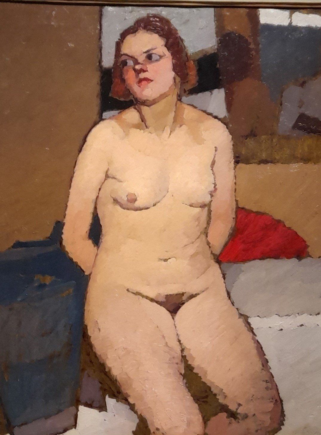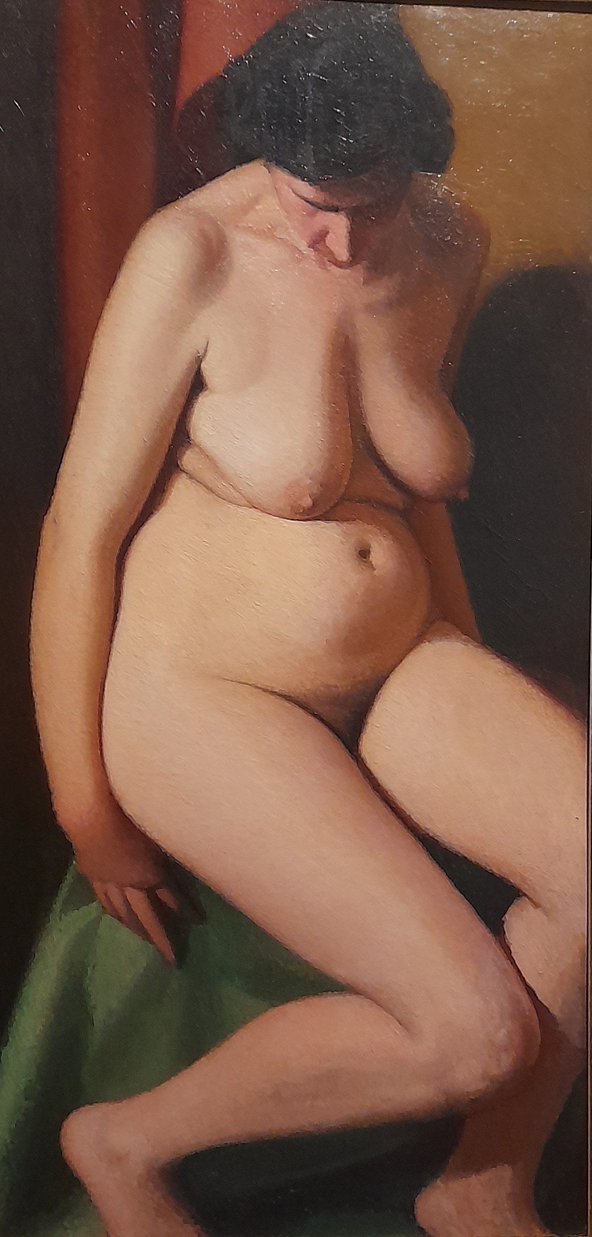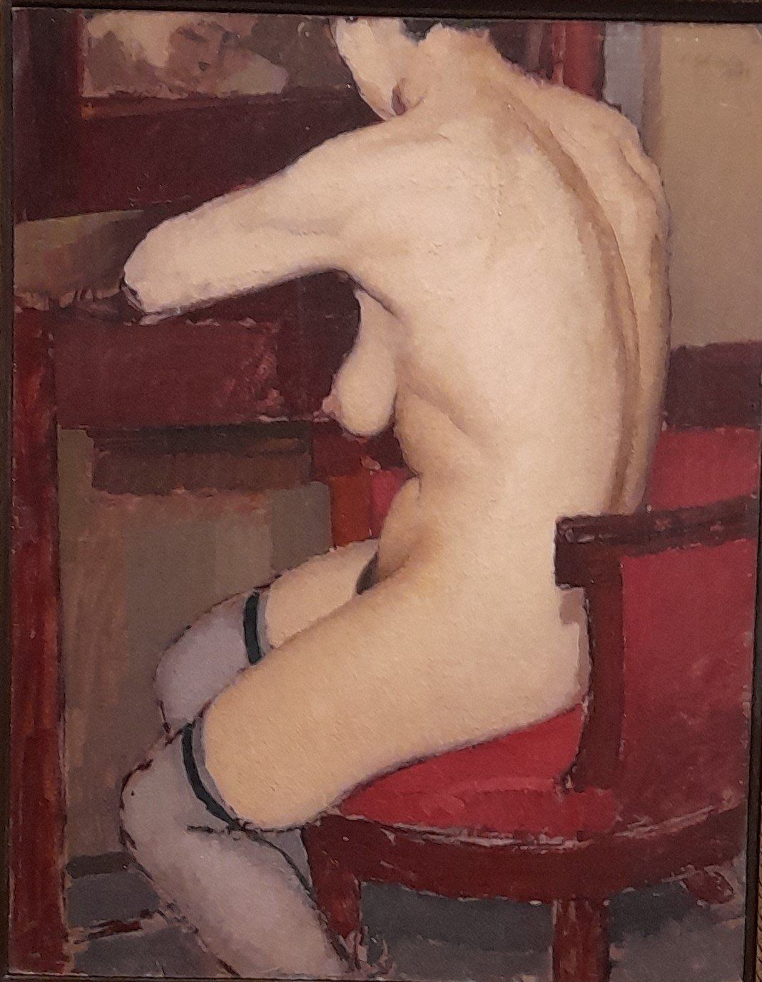 Nel 1922 la Biennale di Venezia riserva a Amedeo Modigliani, amico di Ghiglia dagli anni della formazione a Livorno e a Firenze, il prestigioso riconoscimento di una mostra individuale, premio che arriva, in grave ritardo, dato che l'artista è prematuramente scomparso il 24 gennaio del 1920. Da questo momento i nudi si diffondono nel repertorio di molti pittori e scultori, anche di Ghiglia, che aveva anticipato questa tendenza nel 1908 con Nudo disteso. A mettersi in posa non è, come di consueto, la moglie Isa, ma una o più giovani modelle. Il fascino arcaico delle opere dell'amico Modigliani non gli è indifferente, non importa se le forme allungate, gli occhi a mandorla nascono a Parigi dai Fauve, da Constantin Brancusi o dall'arte africana, in Ghiglia si mescolano con il mondo etrusco, e questo per lui è sufficiente.