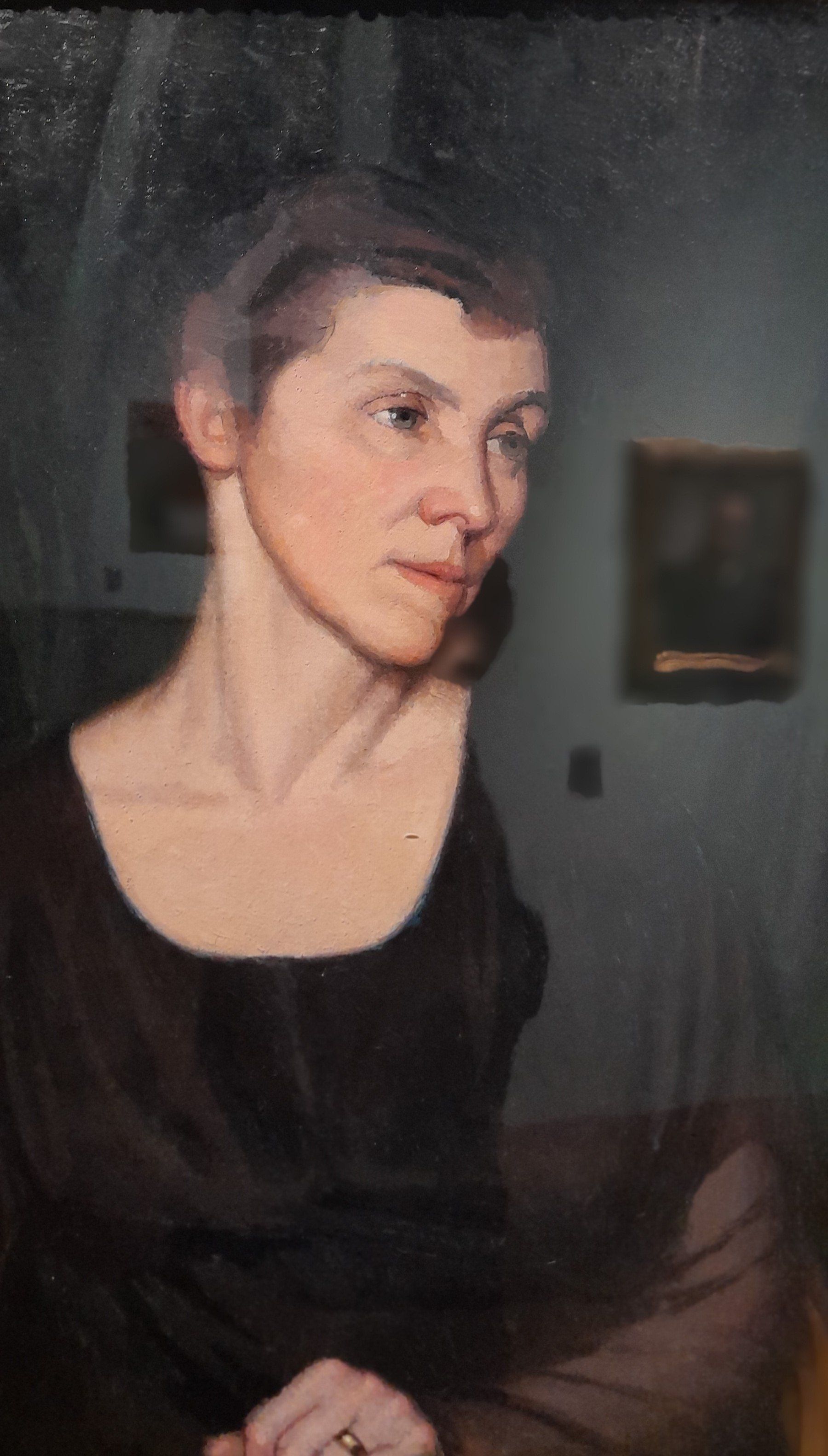 Nei ritratti si notano i gesti e le pose neoclassiche, che donano al dipinto un aura idealizzante, che rimandano alla matrice del ritratto ottocentesco. La scansione netta delle zone cromatiche, tipica del Ghiglia, contribuisce a isolare la figura, con un effetto che ai nostri occhi moderni può apparire di straniamento, ma che certo era recepito senza autoironia, come segno, ancora una volta, di ideale nobiltà.