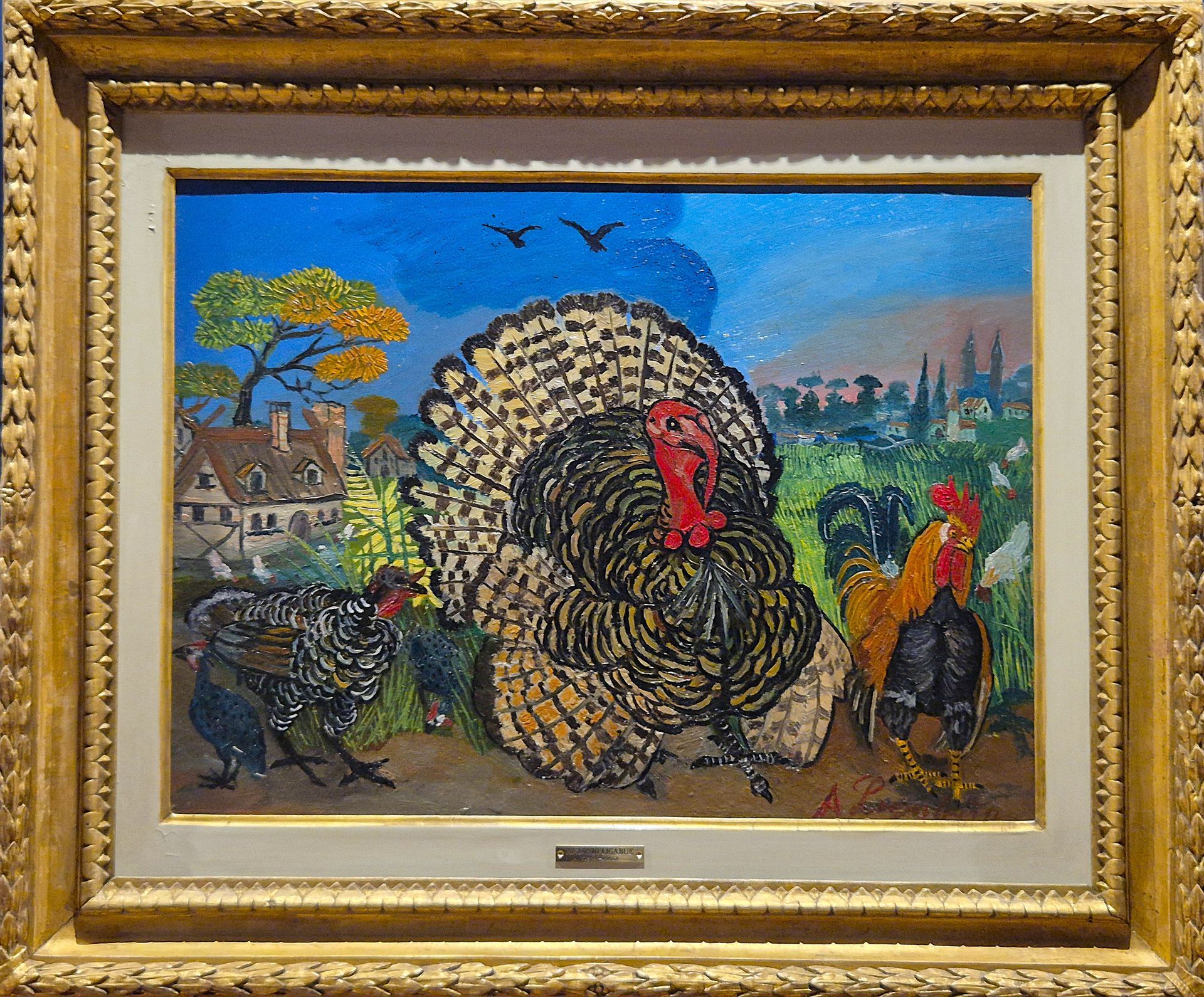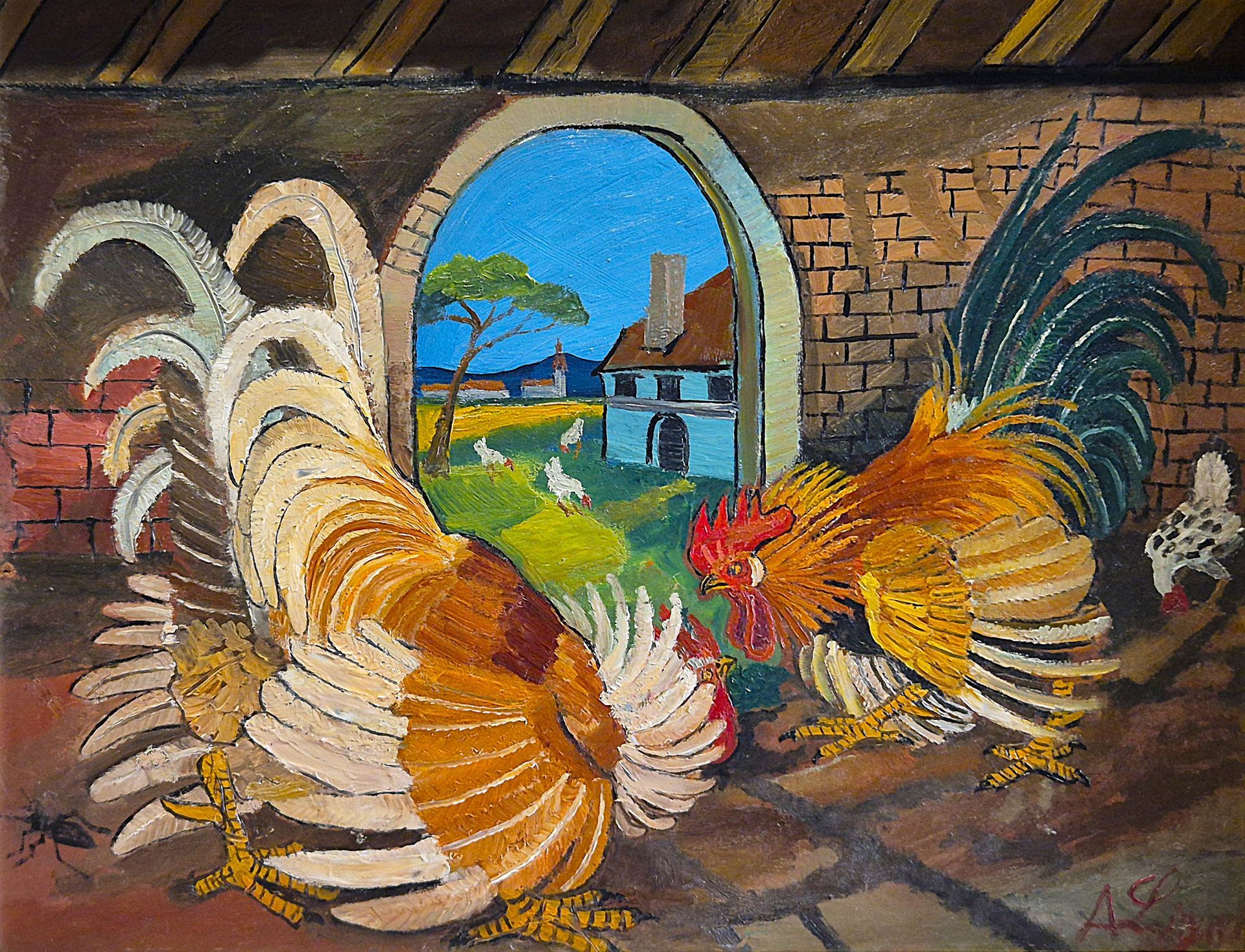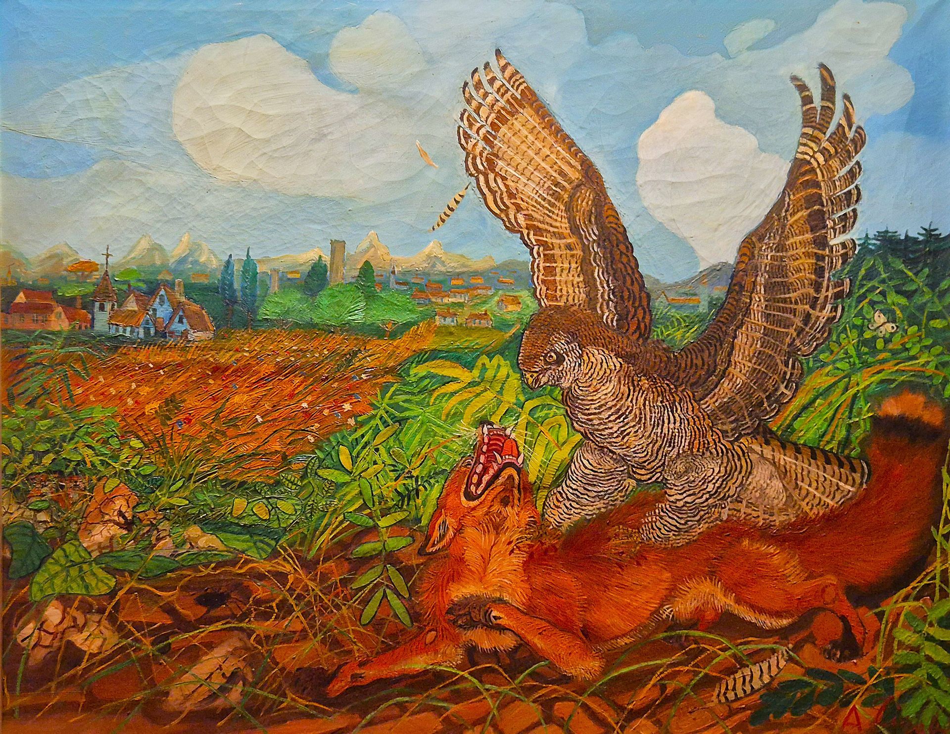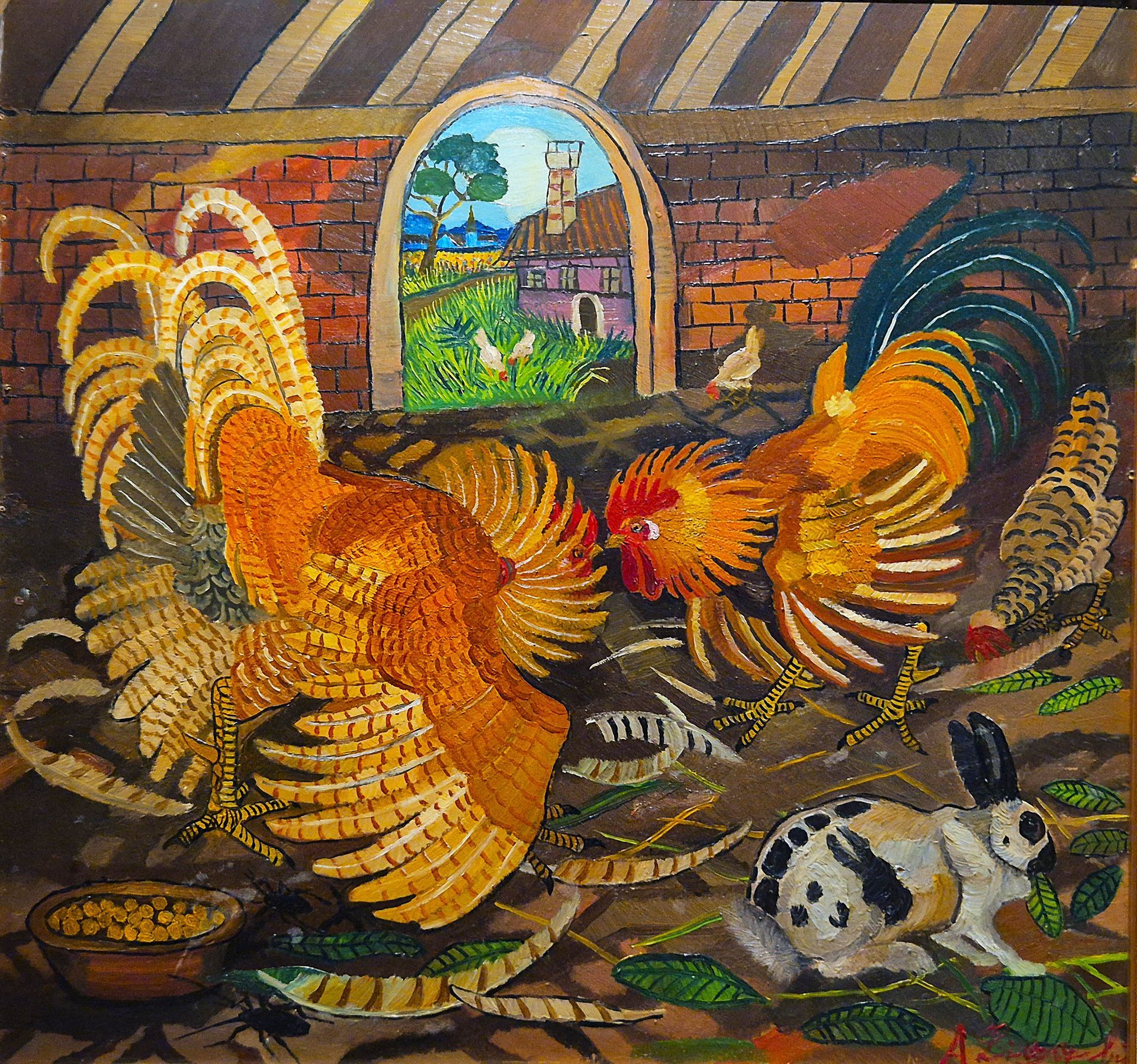 Cuore pulsante della mostra sono le opere più iconiche: i celebri autoritratti, in cui Ligabue si osserva e si espone senza pietà, e soprattutto le potenti raffigurazioni di animali. Tigri, leoni, leopardi, rapaci, cavalli, volpi, animali da cortile impegnati in combattimenti accesi: una vera e propria giungla pittorica, aspra e magnetica, che riflette il mondo interiore dell’artista. In questi soggetti non c’è mai semplice naturalismo. Gli animali diventano alter ego, simboli di forza, paura, aggressività, desiderio di riscatto. Sono creature cariche di tensione, colte nell’attimo decisivo, immerse in una natura selvaggia e visionaria che sembra rispondere agli stessi impulsi emotivi dell’uomo.