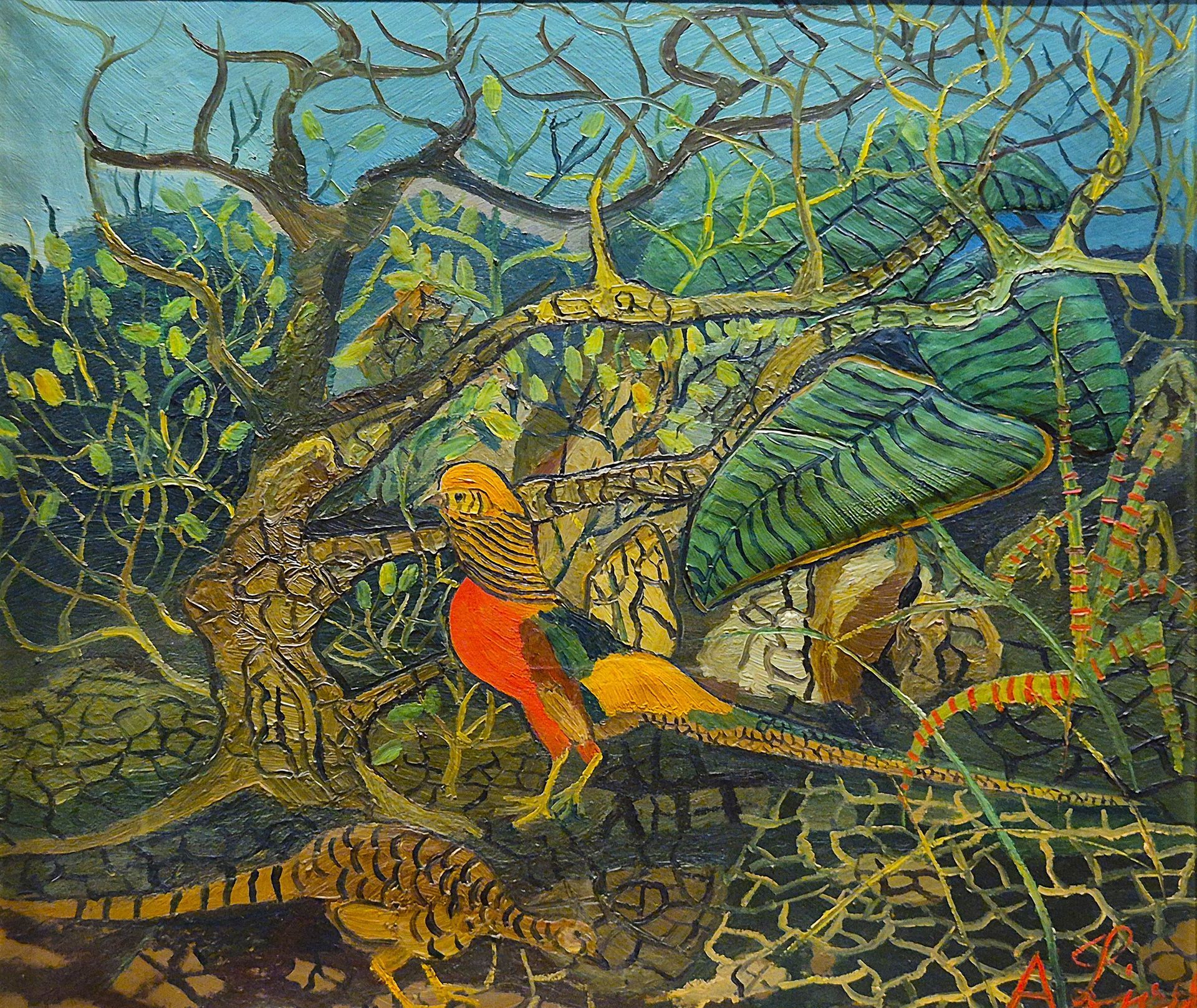 A causa dei limiti linguistici e dell'isolamento obbligato che si ritrova a vivere, passa molto tempo lungo gli argini del fiume Po, dove consolida il suo rapporto con la natura. Numerosi sono i dipinti in cui, attraverso soluzioni sapientemente studiate, sono presenti animali esotici che l'artista ripesca dal suo bagaglio di ricordi degli anni passati a Zurigo, luogo d'infanzia in cui ha vissuto per i primi 19 anni della sua vita, dove visitava spesso lo zoo, il circo e il Museo di Storia naturale di San Gallo.