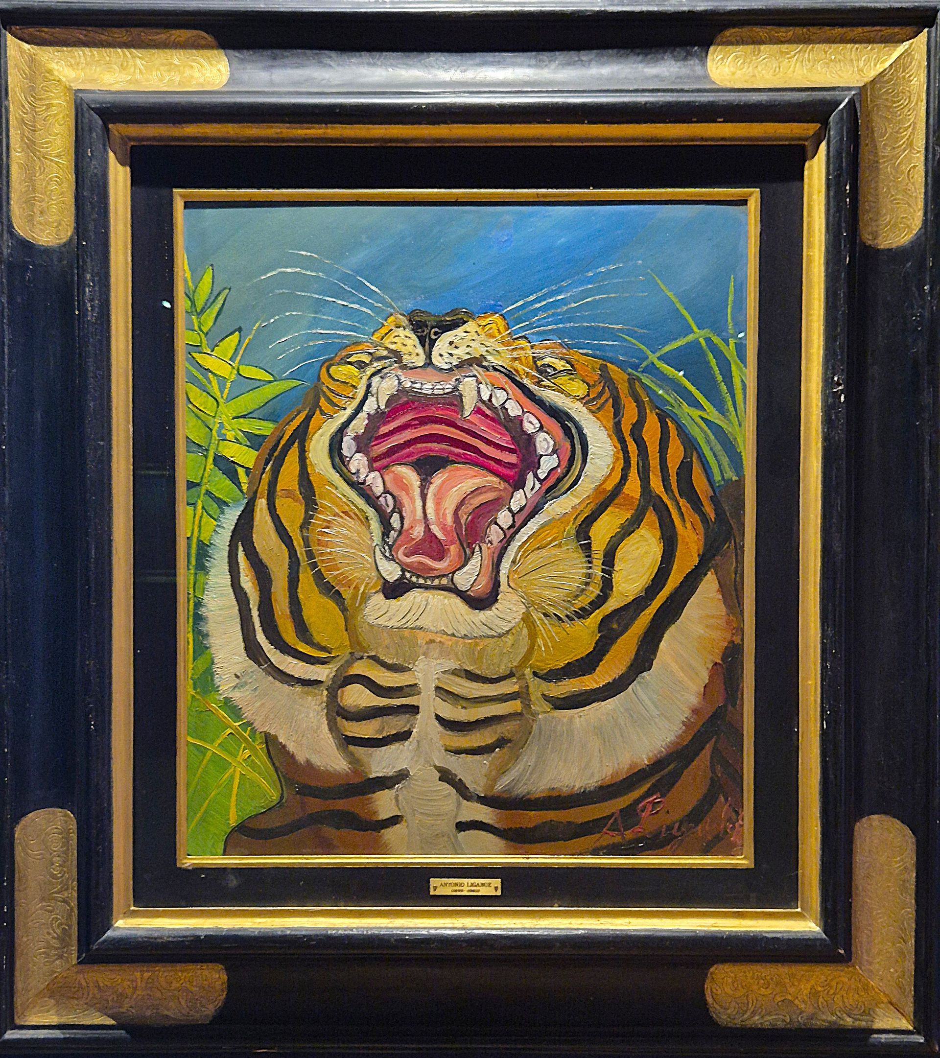 Ligabue non rappresenta una tigre reale, ma un simbolo, la proiezione del proprio spirito selvaggio in lotta con il mondo e con se stesso. In quest’opera, la tensione tra potenza e fragilità trasforma la bestia che si fa grido e identità, ritratto dell'anima dell’artista.