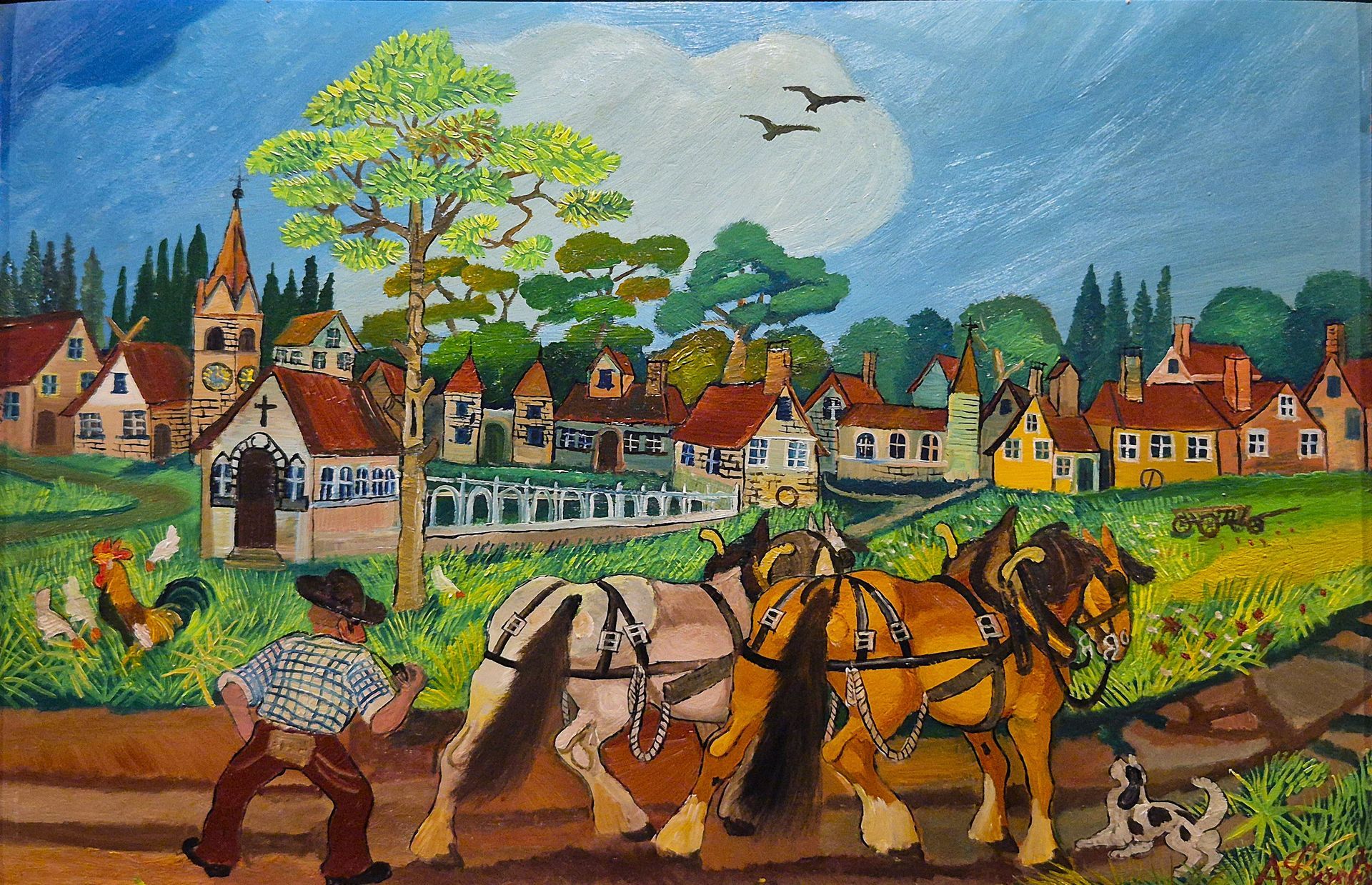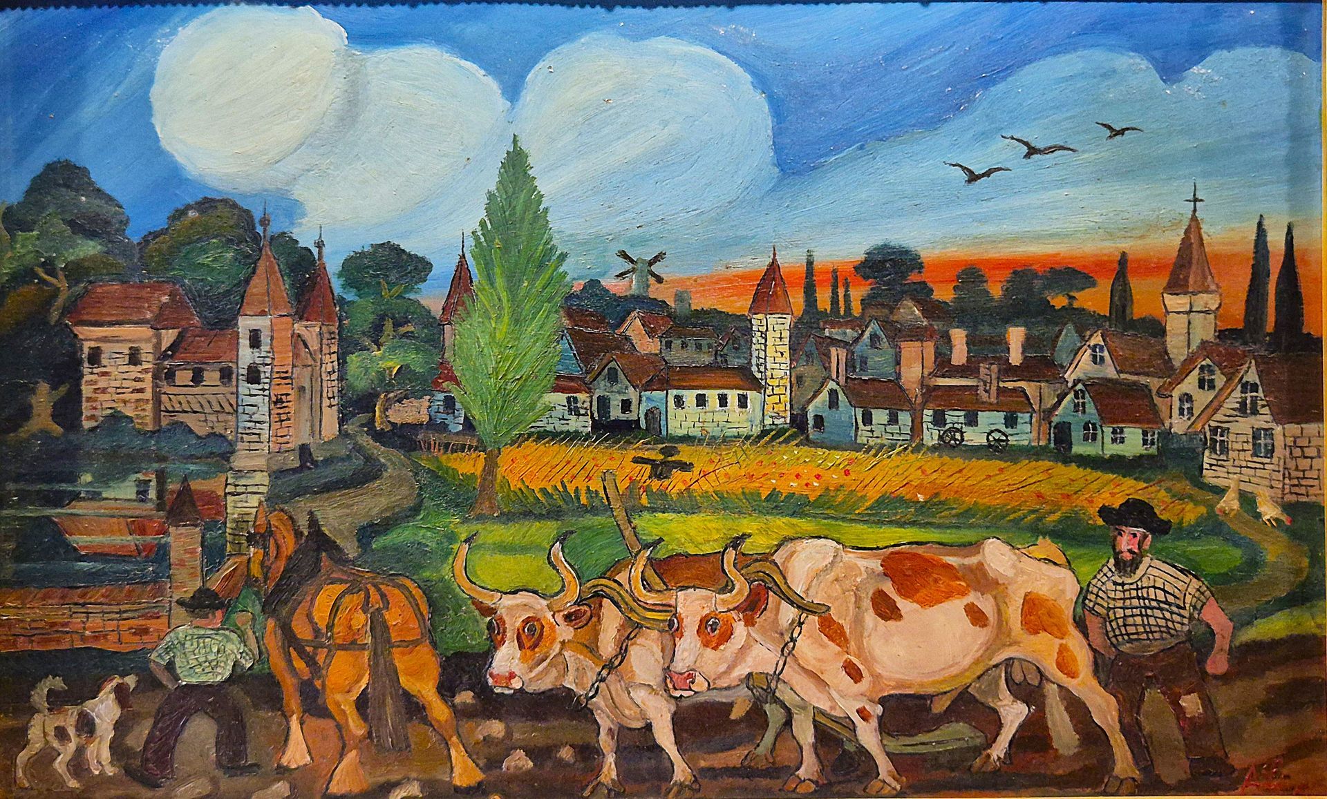 La scena esplode di movimento, i cavalli imbizzarriti trascinano l'aratro in una corsa senza controllo, mentre il contadino tenta invano di dominarli. In questo episodio di vita rurale Ligabue trasforma la fatica quotidiana in un dramma epico, il paesaggio vibrante e agitato partecipa alla tensione dei corpi e degli animi. Le pennellate nervose e i contrasti violenti di colore e luce restituiscono la forza indomabile della natura e dell'uomo che vi si misura. La semina diventa così metafora della lotta per la sopravvivenza, ma anche dell'atto creativo, un gesto di energia e disperazione in cui la terra e l'anima vengono scosse dallo stesso impeto vitale.