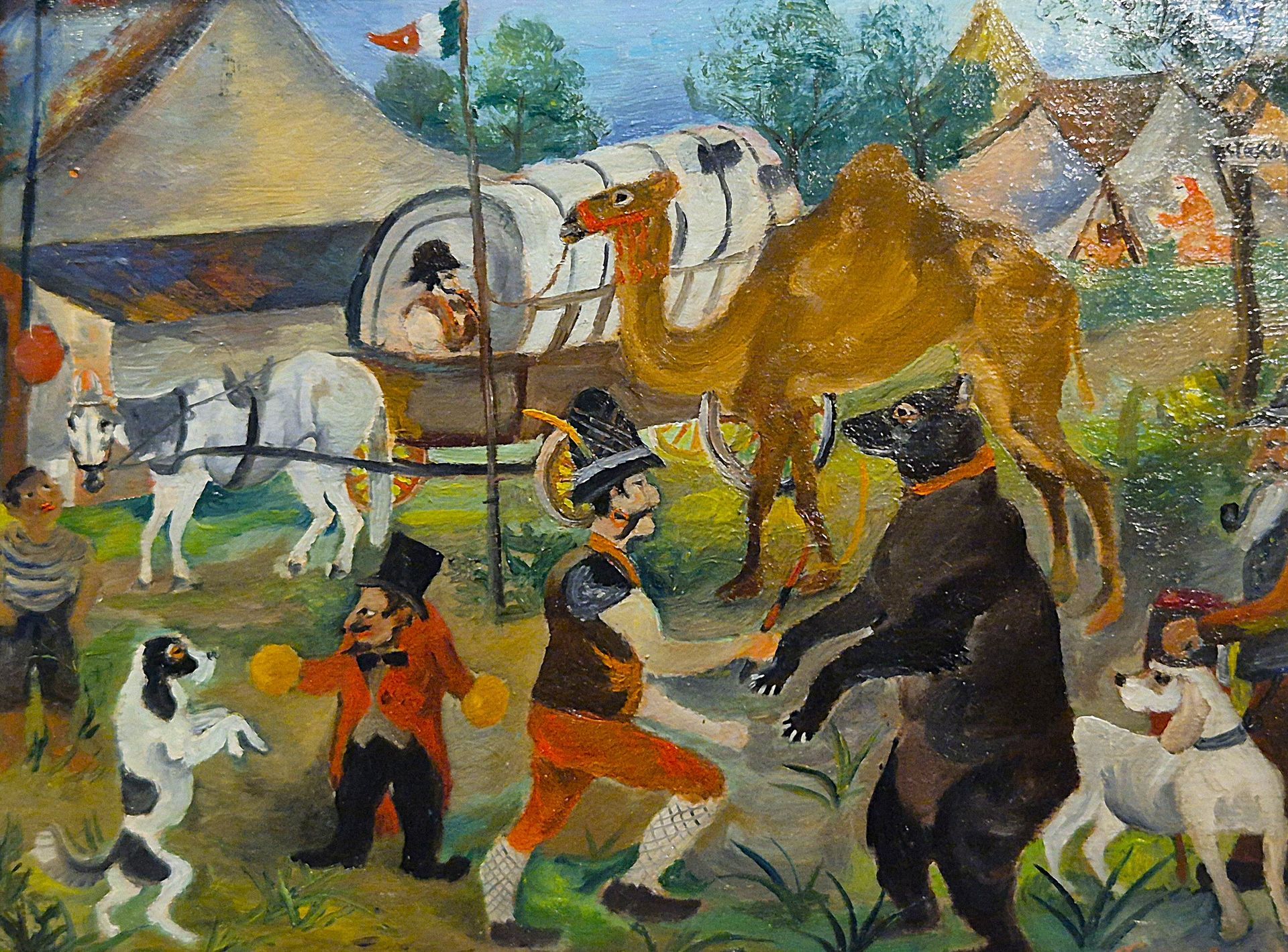 In una girandola di colori accesi e di figure in movimento, Ligabue trasforma il circo in una metafora della vita stessa. Animali acrobati e clown popolano uno spazio sospeso tra realtà e sogno, dove ogni gesto è insieme, spettacolo e destino. L'artista guarda al mondo del circo con fascinazione e inquietudine. Dietro la luce dei riflettori si nasconde la solitudine dei protagonisti, il confine fragile tra gioia e dolore. Il circo è un teatro dell'anima, un luogo dove l'immaginazione diventa rifugio e la pittura ancora una volta strumento di libertà.